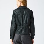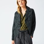 The Field Jacket takes a traditionally masculine waxed cotton fabrication and pairs it with a feminine silhouette in a deep forest green, with a trenchcoat collar and a closure that creates a beautiful diagonal effect at the front. Finished with wrist straps to adjust the sleeves, double-needle French seams, and genuine dark horn buttons throughout.